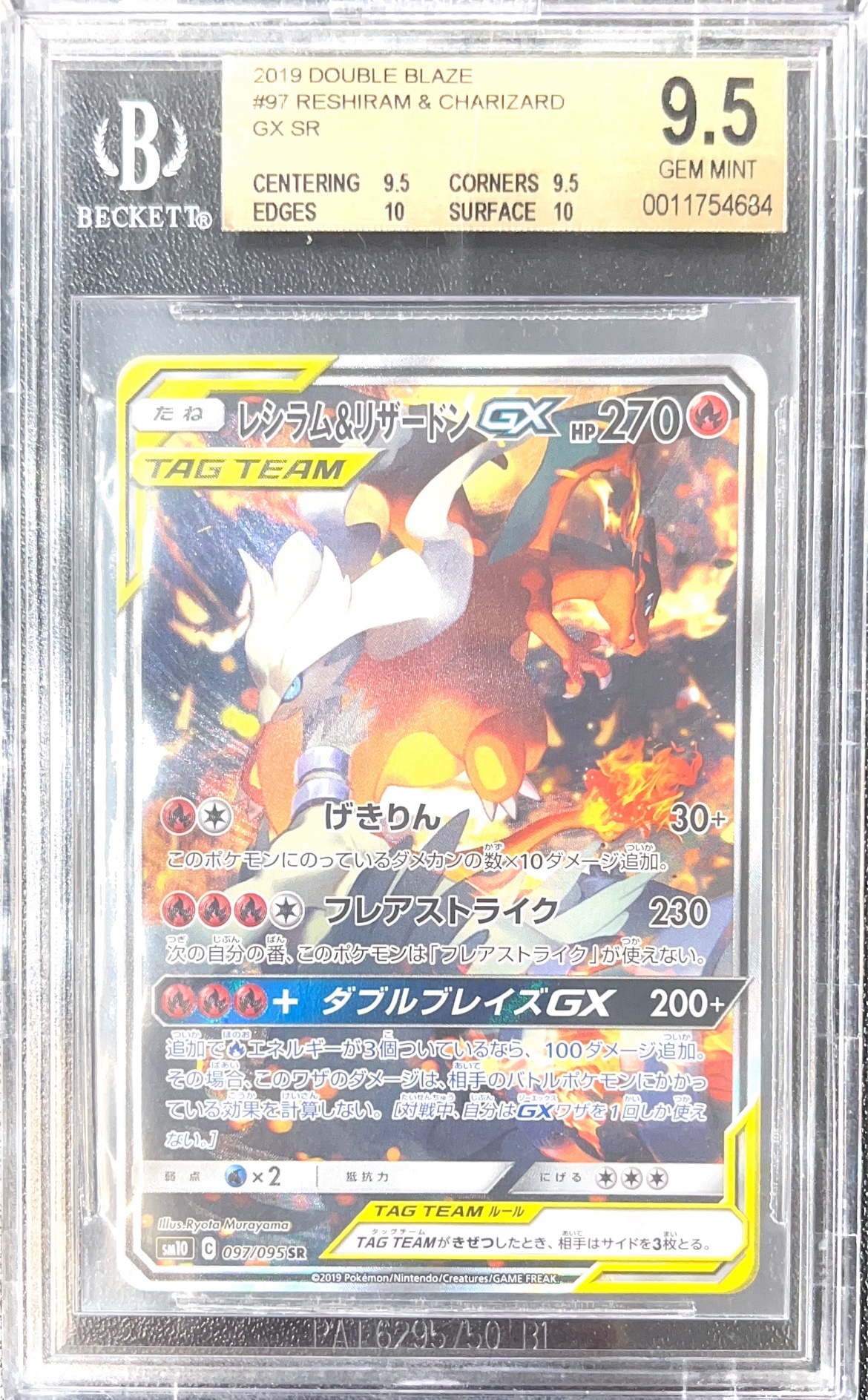 [BGS 9.5] 2019 Pokemon Sun and Moon Double Blaze Reshiram & Charizard GX SR