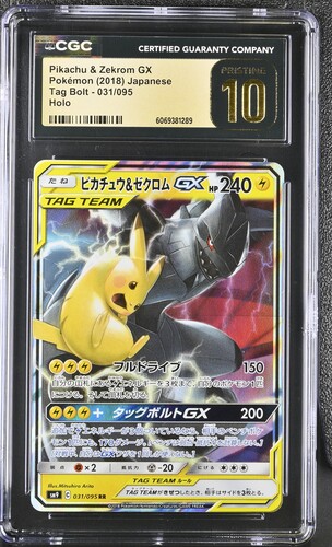 [CGC 10] Pikachu & Zekrom GX, Pokémon 2018 Japanese,Tag Bolt 031/095, Holo