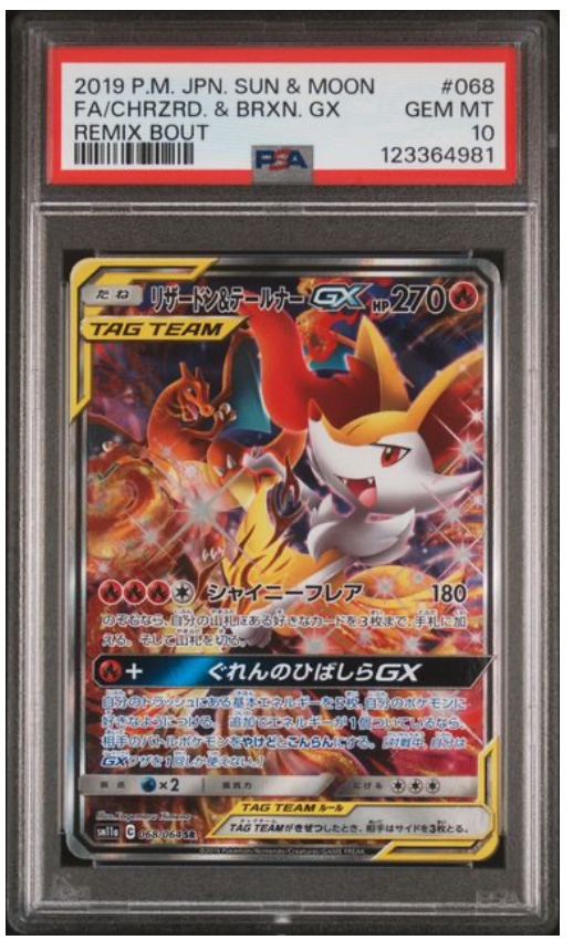 [PSA 10] 2019 POKEMON JAPANESE SUN & MOON REMIX BOUT #068 FA/CHRZRD. & BRXN. GX REMIX BOUT