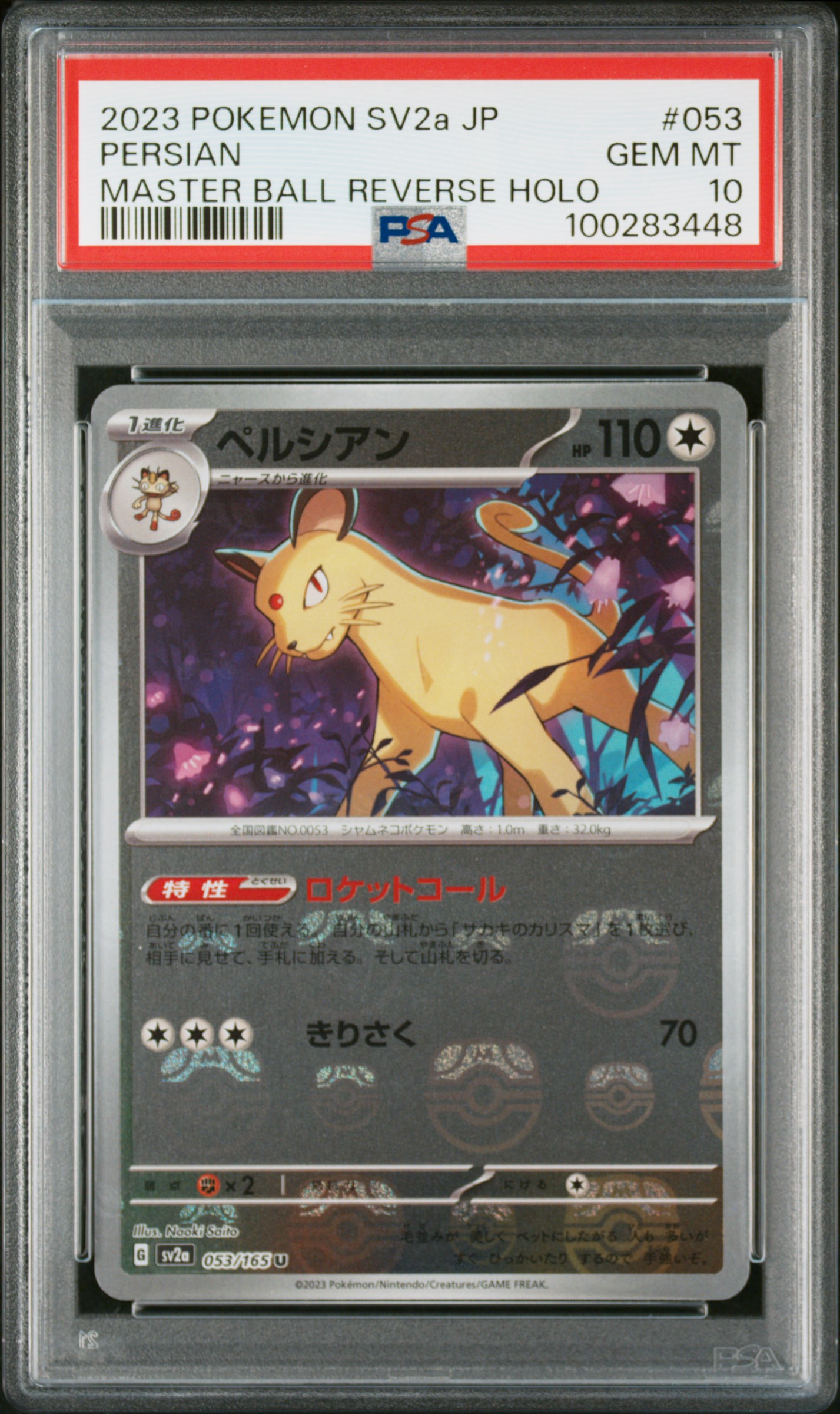[PSA 10] 2023 POKEMON JAPANESE SV2a-POKEMON 151 #053 PERSIAN MASTER BALL REVERSE HOLO