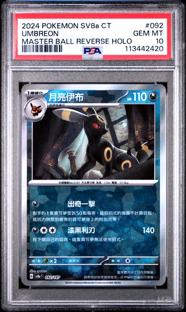 [PSA 10] 2024 POKEMON TRADITIONAL CHINESE SV8a F-TERASTAL FEST ex #092 UMBREON MASTER BALL REVERSE HOLO