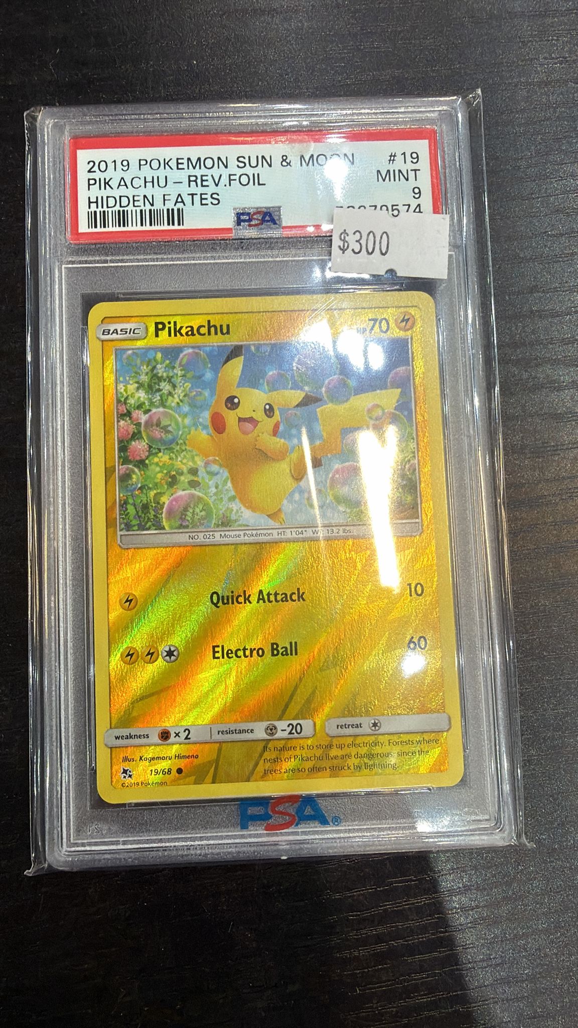 [PSA 9]2019 POKEMON SUN & MOON HIDDEN FATES #19 PIKACHU-REV.FOIL HIDDEN FATES
