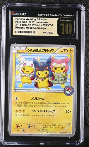 [CGC 10] Pokémon 2015 203/XY-P Poncho-Wearing Pikachu Pikachu Mega Campaign