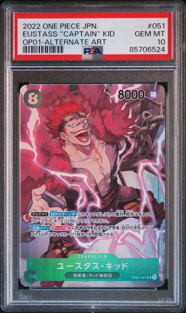 [PSA 10] 2022 ONE PIECE JAPANESE OP01-ROMANCE DAWN #051 EUSTASS "CAPTAIN" KID ALTERNATE ART