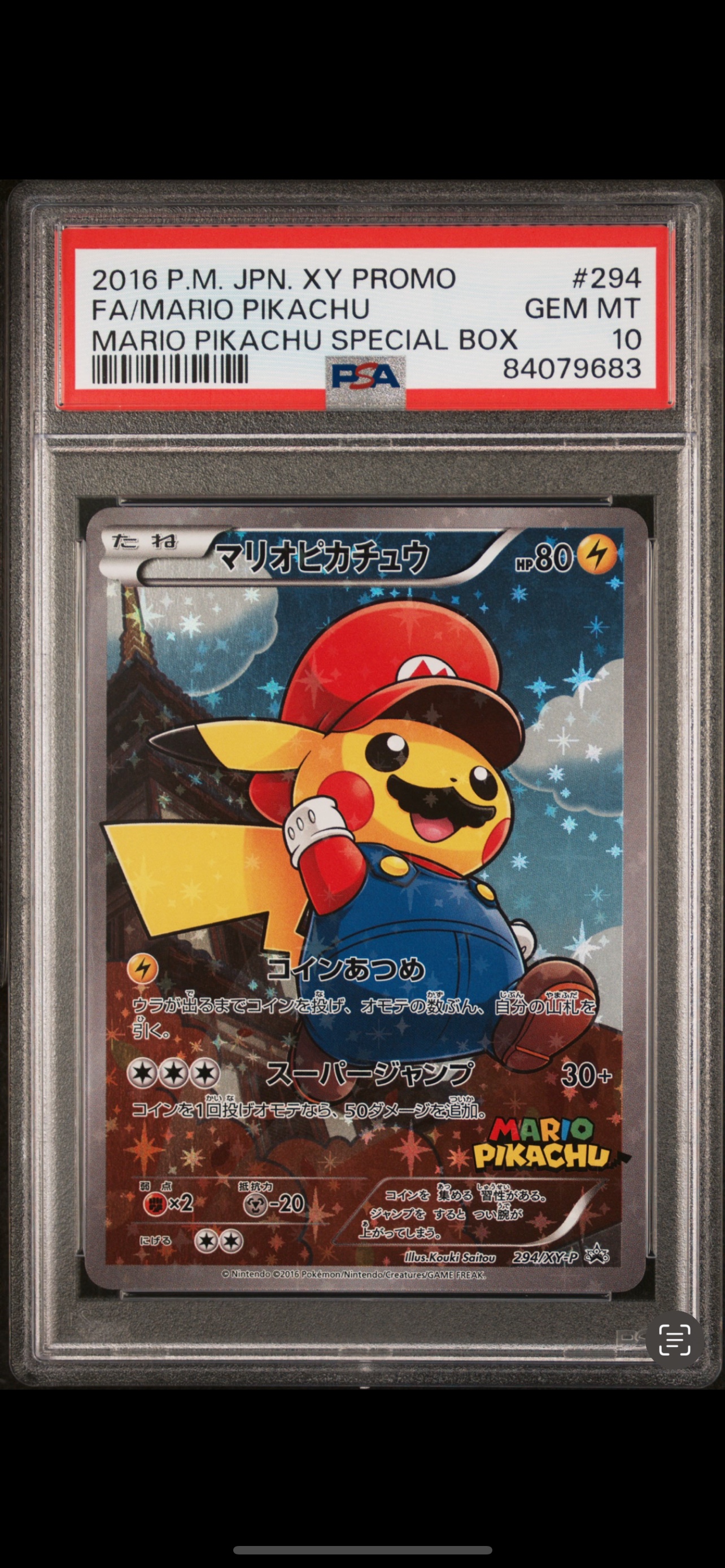 [PSA 10] 2016 POKEMON JAPANESE XY PROMO #294 FA/MARIO PIKACHU MARIO PIKACHU SPECIAL BOX
